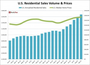 Residential home sales, including single-family homes, condominiums and townhomes, continue to rise, the latest RealtyTrac Residential and Foreclosure Sales Report revealed.