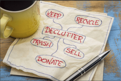 Start the downsizing process by decluttering your current home. Go through each room and evaluate your possessions.  Do you use that item….really? How long has it been since you’ve used it?  Is it adding value to your life?  If not, sell, donate, recycle or throw away.  Remember the more you declutter now, the less you’ll need to move when the time comes.  START EARLY Don’t wait until packing time to start purging.  Take inventory to assess what needs to be moved don’t forget the attic and garage.
